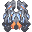 天帝 "向敌人发射远程分裂火炮。可以跨越大多数地形。" Property Value 生命值 18000 护甲 9 尺寸 5.5x5.5 格 建造花费 480 钍 720 硅 300 铍 240 钨 480 碳化物 空中单位 否 移动速度 8.25 格/秒 可助推 否 物品容量 170 武器 • 开火速率: 2x 0.23 /秒 • 195 伤害 • 85 范围伤害 ~ 2.5 格 • 15x 分裂子弹: • 50 伤害 • 46 范围伤害 ~ 3.7 格 • 2x 穿透 • 追踪 范围 47.6 攻击空中单位 否 攻击地面单位 是 内部名称 否name